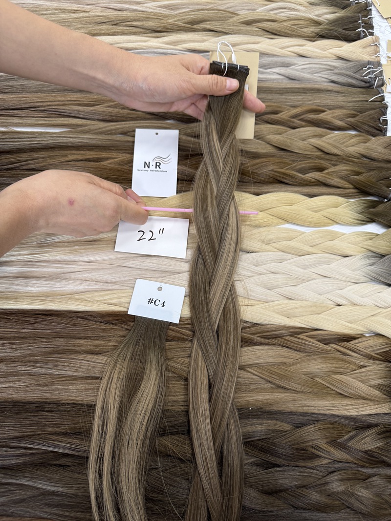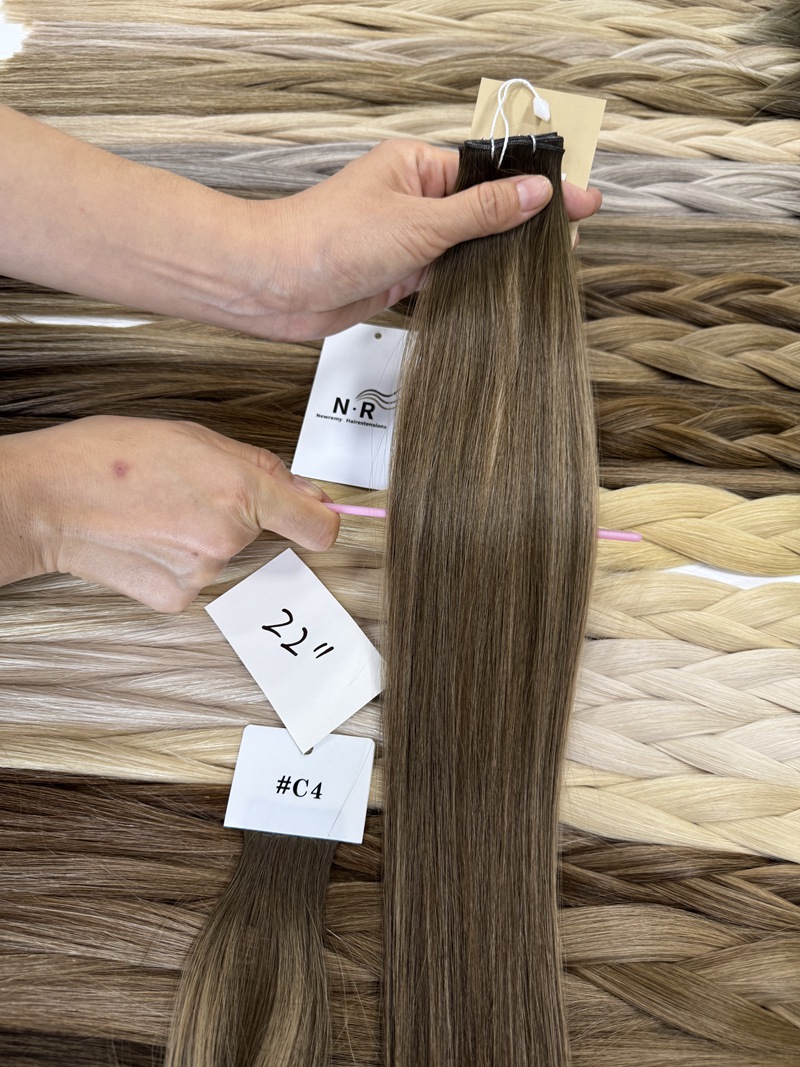 Combining the benefits of machine and hand-tied wefts,each weft is engineered to provide the thinnest top for an invisible effect, coupled with the ability to be cut without shedding. No mustache ensures supreme comfort and durability, making it the perfect choice for luxury salons and professional stylists.  Since its introduction in 2022, this human hair weft has rapidly gained popularity among professionals and swiftly dominated the high-end market due to its superior quality and performance