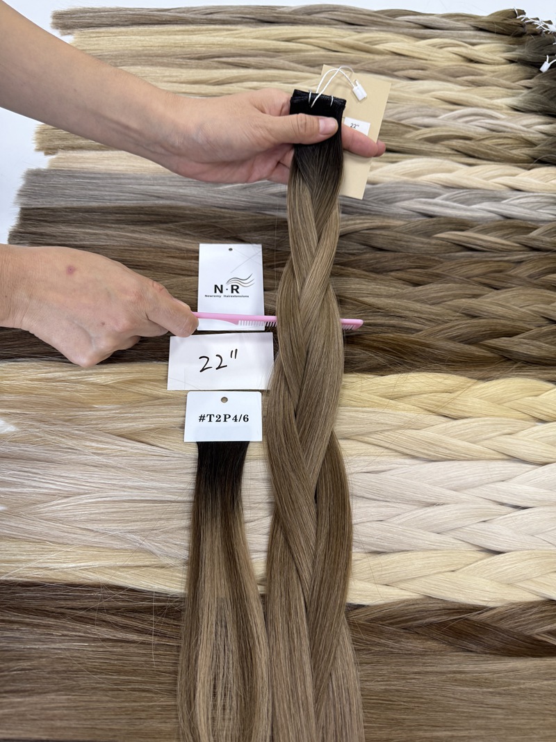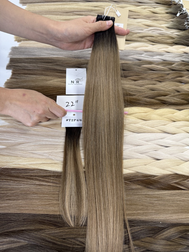 Combining the benefits of machine and hand-tied wefts,each weft is engineered to provide the thinnest top for an invisible effect, coupled with the ability to be cut without shedding. No mustache ensures supreme comfort and durability, making it the perfect choice for luxury salons and professional stylists.  Since its introduction in 2022, this human hair weft has rapidly gained popularity among professionals and swiftly dominated the high-end market due to its superior quality and performance